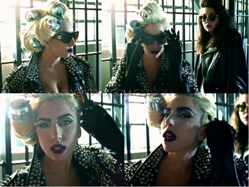 Bertrand's combination of color oddly works here, i dig the neutral t-shirt, jeans, and Nike's, with the bright blue leather bomber. of course, the hair makes the look.